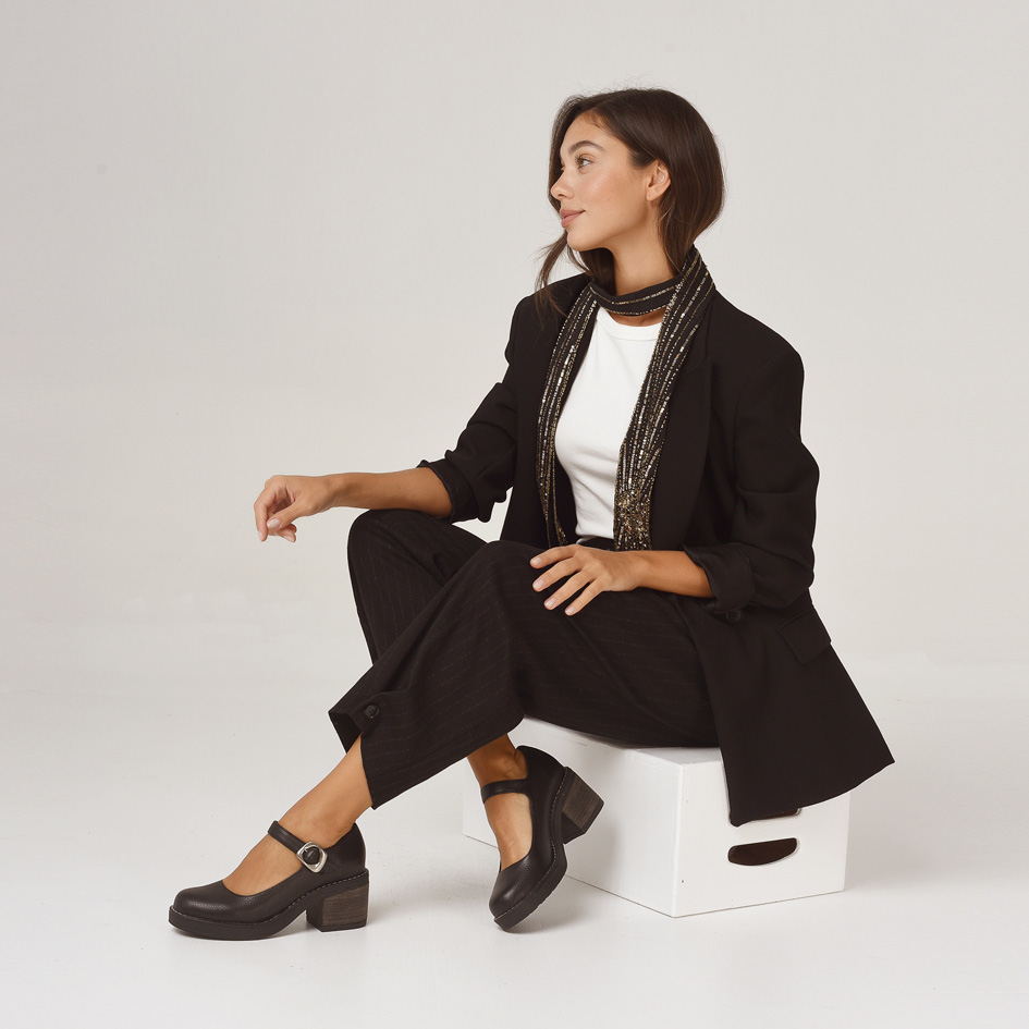 - Detalles: hebilla de diseño plateada.